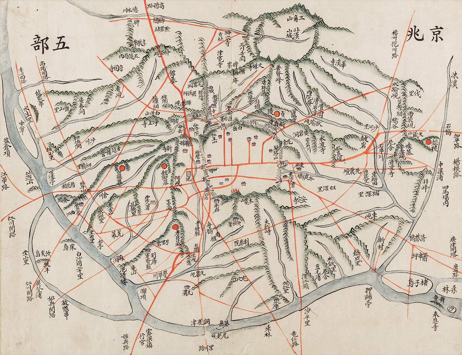 과 도로, 하천, 사찰, 동명(洞名), 주요 시설 등이 자세히 표시되어 있다. 도성 안에서 돈의문(서대문), 소의문(서소문), 숭례문(남대문) 등 3문 밖으로 나온 도로는 거미줄처럼 복잡하게 서로 얽혀 고양·행주·강화·인천·시흥·과천·용인으로 가는 길과 연결되었다. 혜화문(동소문)·흥인문(동대문)·광희문 밖의 도로는 양주·포천, 가평, 양근(楊根), 광진(廣津), 광주(廣州)로 가는 길과 연결되었다. 【자료 1】 〈경조오부도〉 속 한양도성과 경강의 모습, 규장각한국학연구원 소장 도성을 둘러싸고 있는 산에서 발원하는 하천들이 경강으로 합류하는 모습도 볼 수 있다. 무악의 남쪽에서 흘러나와 공덕리(孔德里)와 동막(東幕) 앞을 지나 경강으로 들어가는 마포천의 모습과 와우산(臥牛山)과 광흥창(廣興倉)을 지나 서강으로 합류하는 창천(倉川)도 그려져 있다. 아울러 무악재에서 발원하여 서대문 밖 경영교(京營橋)·소의문 밖 신교(新橋)·남대문 밖 염초청(焰硝廳)·주교(舟橋)를 지나 경강으로 흘러 들어가는 만초천(蔓草川) 주변의 모습도 보인다. 동쪽의 안암천·석관천(石串川)이 만나 중랑포로 들어가 경강으로 합류하는 모습도 그려져 있다. 경강 주변으로는 율도(栗島, 밤섬)·여의도·저자도 등 여러 섬과 함께 강줄기를 따라 망원정·서강·흑석리·토정(土亭)·용산·동작진·서빙고·한강진·수철리 등 주요 마을이 표시되어 있다. 조선시대 서울의 울타리 역할을 했던 경강의 거대한 물줄기는 한성부 성저십리의 서쪽과 남쪽 경계였다. 조선을 건국한 태조 이성계는 도성 배후지로의 역할을 강화하기 위해서 주변의 군현을 예속시켜 성저십리를 만들었다. 이때 새 도읍지 한양의 성저십리로 예속된 군현 가운데 하나가 부원현(富原縣)이다. 부원현은 『고려사』 지리지에 따르면 1284년(충렬왕 10)에 양광도(楊廣道) 광주목(廣州牧) 과주(果州)에 소속된 용산처(龍山處)가 현으로 승격된 지역이다. 이후 1394년(태조 3)에 이르러 부원현은 행주(幸州)에 소속되었다가 한성부로 편입되었다. 성저십리로 편입된 부원현은 남대문과 서소문 밖에서부터 서강, 흑석리, 용산, 한강진(漢江津)에 이르는 지역으로, 오늘날의 한강 주변이다. 『신증동국여지승람(新增東國輿地勝覽)』에는 부원현을, 없어진 군현인 ‘폐현(廢縣)’으로 기록하며, “지금은 성저십리로 한성부에 소속되었다.”라고 부연설명을 했다. 김정호가 편찬한 『대동지지(大東地志)』에는 한성부의 옛 고을[古邑]로 부원현을 기록했다. 부원현이 어느 시점에 한성부로 편입되었는지는 알 수 없다. 다만 추측해보자면, 1395년(태조 4) 6월 6일 한양부가 한성부로 명칭이 바뀌고 한양부의 아전과 백성들이 현재 경기도 양주지역인 견주(見州)로 이주했다. 그리고 일주일 뒤 한성부 성저십리의 예에 따라 개성유후사(開城留後司)의 영역이 조정되었다. 이때 부원현 역시 한성부 성저십리로 편입된 것이 아닌가 생각된다. 이러한 한성부 성저십리의 범위는 동쪽으로는 양주 송계원(松溪院)과 대현(大峴)이며, 서쪽으로는 양화도(楊花渡)와 고양 덕수원(德水院)이다. 남북의 경계는 남쪽은 한강·노량진에 이르는 지역이며, 북쪽은 삼각산(북한산)이다. 동쪽 경계인 송계원은 정부에서 주요 교통로의 길목에 세워 운영하던 여관의 하나이다. 이 원이 위치한 마을이 현재의 서울 중랑구 묵동 일대인 송계동(松溪洞)이다. 이곳은 주변으로 태릉(泰陵)·강릉(康陵)·동구릉(東九陵) 등 왕릉이 위치해 국왕 능행 시 왕이 잠시 머물며 점심을 먹는 주정소(晝停所)로 이용되었다. 대현은 경강 인근 수철리(水鐵里) 지역의 고개로, 현재 성동구 금호동 1가에서 옥수동으로 넘어가는 곳이다. 주위의 여러 고개 가운데 가장 컸기 때문에 주민들은 ‘큰고개’ 대현이라 했다. 이곳에는 솥과 각종 농기구 등을 만드는 야장(冶匠)이 모여 살아 무쇠막·무수막·무시막 고개로도 불렸다. 그런데 한가지 궁금증이 생긴다. 과연 ‘성저십리’가 말 그대로 도성에서 10리 떨어진 지역이었을까. 결론부터 말하면 꼭 그런 것은 아니다. 동쪽의 양주 송계원은 실제 거리가 10리가 넘었다. 송계원과 도성 간의 정확한 거리는 알 수 없지만, 인근의 송계교가 중량포(中梁浦) 가까이에 있다. 중량포는 『신증동국여지승람』에 의하면 도성에서 동쪽으로 15리 떨어져 있으며, 『동국여지비고』에서는 도성 동쪽 13리 지점이었다. 따라서 송계원은 적어도 도성 밖 13리가 넘는 지역에 위치한다고 할 수 있다. 큰 고개 대현이 있는 수철리도 경강 두모포(豆毛浦) 바로 인근에 있으므로 이를 통해 거리를 살펴보면, 도성에서 동남쪽으로 5리 떨어진 지역이다. 성저십리의 서쪽 경계인 양화도는 도성과의 거리가 10리이다. 덕수천(德水川) 남쪽에 있는 덕수원의 경우 덕수천이 고양군 동쪽 10리 지점에 있으며, 고양군의 위치가 도성과는 37리 거리이므로 서울과 약 27리 떨어진 지점에 있다고 추정할 수 있다. 덕수원이 성저십리의 범위에 들어간 이유는 삼각산(북악산)의 사례에서 짐작해 볼 수 있다. 덕수천은 도성과 30리 떨어진 삼각산과 평행한 위치에 있다. 삼각산과 도성 간의 거리는 30리이다. 하지만 이는 사람