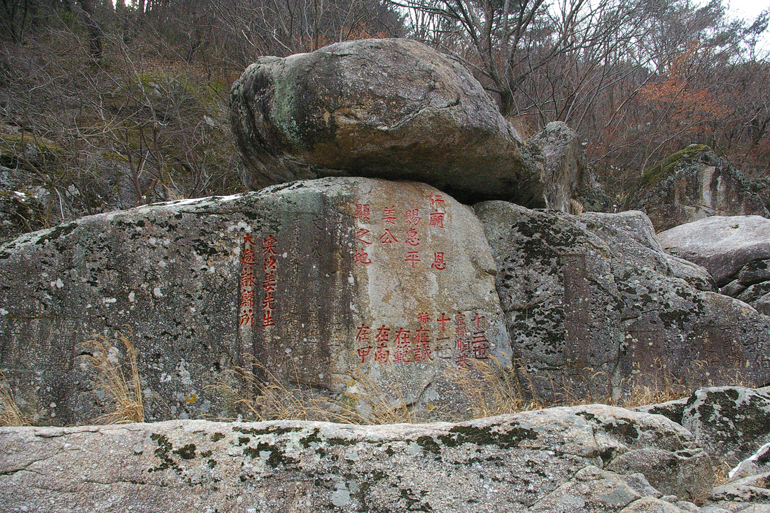 혹 숙소로 사용한 사찰에서나 길잡이 승려 중에 해박한 고승(高僧)이라도 만나면 산중고사(山中故事)나 관련 내력 등을 얻어듣기도 하였다. 지리산행에서는 이동항이 함양 명적암(明寂庵)에 들렀을 때 그곳의 승려 도원(道原)과 기질지성(氣質之性)에 관해 심도 있게 진행한 논쟁이 유명하다. 유교와 불교의 이론을 두고 한밤중 적막한 산사에서 두 고수(高手)의 설전(舌戰)이 제법 긴장감을 유발하였다. 각자(刻字) 또한 산행에서 빼놓을 수 없는 일이었다. ‘각자’는 ‘글자를 새긴다’는 뜻이다. 바위에 새기는 경우가 가장 많았고, 사찰이나 누정(樓亭)의 벽과 기둥 등 장소를 가리지 않고 새겼다. 대개 자신을 포함한 동행자의 이름을 새겼고, 한시를 새기기도 했으며, 자신이 찾은 공간에 이름이 없는 경우에는 새로이 이름을 지어 주고 새겼다. 따라서 이들은 기본적으로 산행을 떠날 때 석공(石工)을 대동하였다. 지리산에도 많은 각자가 현전하고 있다. 이러한 행위가 언제부터 시작되었는지는 확인되지 않는다. 지리산에서 유람자가 직접 각자한 것은 김종직에게서 처음 보인다. 1471년 함양군수로 부임한 그는 이듬해 추석을 즈음하여 천왕봉으로 향했고, 마천리 의탄마을에 도착해 동행했던 제자 유호인(兪好仁, 1445~1494)에게 바위에 이름을 새기도록 하였다. 그리고 17년 뒤인 1489년 천왕봉에 오른 김일손은 성모사 들보에서 스승 김종직과 동문 유호인·조위(曺偉, 1454-1503)의 이름을 발견하였다. 김종직은 천왕봉에 올라 성모사에서 묵으며 일출을 보게 해 달라고 성모에게 기도하였고, 우여곡절 끝에 찬란한 일출을 맞이한 후 하산하였다. 이로써 천왕봉에서도 그들의 각자 행위가 있었음을 알 수 있다. 이렇듯 산행에서의 각자는 관행적으로 행해졌고, 일종의 의식이기도 했다. 추앙하는 선현을 닮고자 하는 염원이기도 했고, 가깝게는 스승이나 조상의 이름 곁에 자신의 이름도 나란히 새겨서 남기려는 소박한 바람이기도 했다. 또한, 산속의 돌에라도 이름을 남기려는 인간의 헛된 욕망의 표출이기도 하였다. 지리산의 명승 중 각자로 이름난 곳은 천왕봉의 일월대, 쌍계사 입구의 쌍계석문(雙磎石門), 삼신동(三神洞)의 세이암(洗耳嵒), 그리고 함양의 용유담(龍游潭)이 압도적이다. 【그림 18】 용유담의 각자들 【그림 19】 세이암 【그림 20】 쌍계석문 각자 ‘일월대’는 지리산 유람록에서 단연 많이 등장하는 각자 중 하나이다. 산행의 최종 목적지가 천왕봉이었기 때문에 그곳에 오른 후의 벅찬 감동을 어떤 형태로든 남기고자 하는 욕구와 어우러져 더욱 많은 이름을 남겼다. 함양군수 남주헌은 동행했던 경상감사 윤광안·진주목사 이낙수·산청군수 정유순의 이름을 새겼고, 죽담(竹潭) 김영조(金永祖, 1842~1917)는 “관찰사·암행어사·수령의 이름이 빼곡히 새겨져 있었다.”라고 하였으며, 후창(後滄) 김택술(金澤述, 1884~1954)은 “앞뒤로 유람 온 사람들이 써 놓은 이름이 많았는데, 아버지와 아들을 함께 써 놓거나, 4대를 나란히 써서 세보(世譜)와 같은 것도 있었다.”라고 하였다. 후대에 이를수록 천왕봉에 오르면 반드시 해야 하는 하나의 의식으로 인식했던 듯하다. 이 때문인지 지금도 일월대 각자 주변에는 이름이 많으며, 심지어 한글 이름 자도 여럿 보인다. 용유담 가의 바위에도 수많은 사람의 이름이 새겨져 있다. 그중에는 김종직·김일손·정여창과 남명 조식 등의 이름이 현재까지도 남아 있다. 이들이 용유담을 다녀간 것을 기념하여 후세 사람들이 새긴 듯한데, 호사가(好事家)의 입에 많이 오르내리기도 하였다. 그 외에도 ‘용유담·용유동천(龍游洞天)’이라는 제명(題名)은 물론이고 ‘독조대(獨釣臺)·심진대(尋眞臺)·영귀대(咏歸臺)·방장제일강산(方丈第一江山)’ 등의 각자 아래에 수십 명의 이름이 현전하고 있다. ‘귀를 씻는다’는 뜻의 ‘세이암’은 남명이 지리산 골짜기에서 가장 아름답다고 칭송했던 신응동(神凝洞)의 너럭바위에 새겨진 각자이다. 이는 최치원(崔致遠)이 세상사를 들은 귀를 씻었다는 전설과 함께 그의 글씨로 전해진다. 유몽인의 「유두류산록」에서 처음 보인다. 이후 이 골짜기를 찾은 유람자들은 세이암을 보고 자신의 감회를 드러내었다. 남계(南溪) 신명구(申命耈, 1666-1742)는 ‘역시 최고운(崔孤雲, 최치원의 호)의 필적이었다. 그 필세가 이제 막 새긴 듯했고, 지금도 이끼가 끼지 않는다고 하니, 매우 특이한 일이었다.’라고 하여 세이암에 얽힌 전설을 전하였다. 박래오는 “세이암 위 옛 각자는 완연히 어제 판 듯하여 선풍(仙風)이 없어지지 않았고 도기(道氣)가 서려 있었다.”라고 하여, 신명구와 비슷한 평을 하였다. 심석재(心石齋) 송병순(宋秉珣, 1839-1912)은 세이암에서 귀를 씻고 일행에게 이르기를 “이 바위가 어찌 유독 최고운만 귀를 씻던 곳이겠는가.”라고 하여, 유쾌한 농담을 던지고 있다. 지리산 유람록에 등장하는 가장 오래된 각자는 단연 하동 쌍계사 입구의 ‘쌍계(雙磎)·석문(石門)’이다. ‘쌍계·석문’은 하동 쌍계사로 들어가는 입구 양쪽에서 대문 역할을 하던 두 바위의 글씨이다. 양쪽에 각각 ‘쌍계’와 ‘석문’ 두 글자씩 
