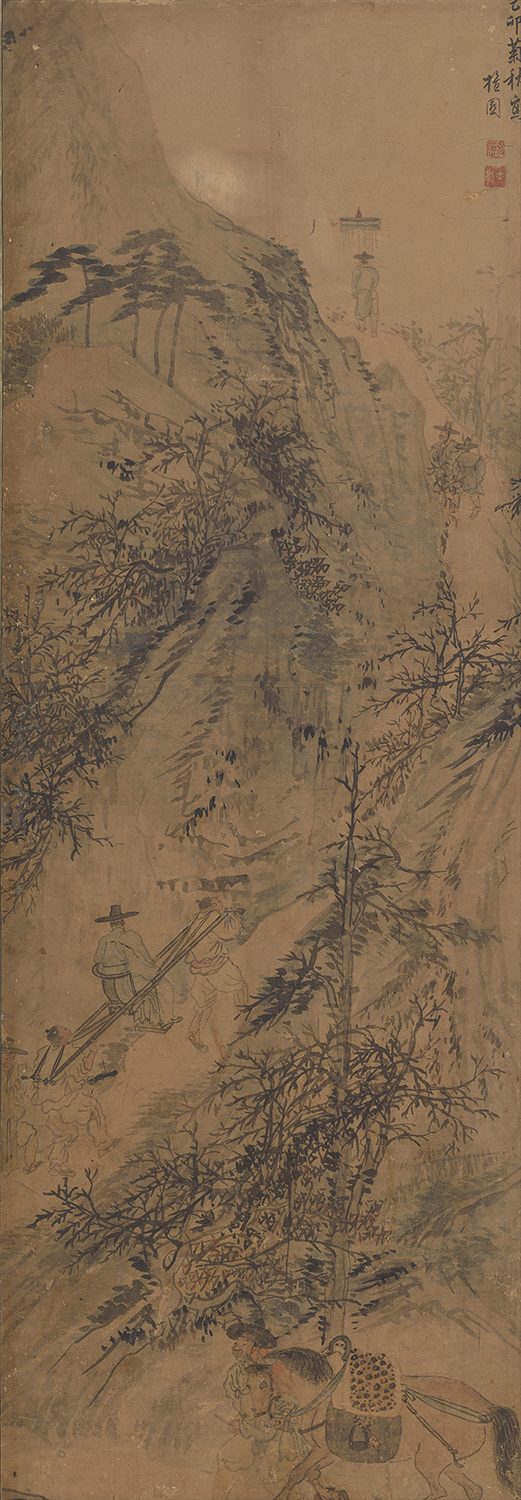 읽어 유람 도중 사찰과 봉우리의 이름을 미리 알 수 있었다.”라고 하였고, 하익범(1767-1815) 또한 천왕봉에서의 일출을 보고서 “눈으로 볼 수 있는 곳의 산과 내와 고을 이름은 이미 탁영 선생의 유산기에 다 수록되어 있으니, 내가 무엇을 더 서술하겠는가?”라고 한 후 곧장 하산 길에 올랐다. 유몽인(1559—1623)은 일두(一蠹) 정여창(鄭汝昌, 1450-1504)의 공간 악양정(岳陽亭)에서 김일손의 「두류기행록(頭流紀行錄)」에 소개된 두 사람 간의 일화를 소개한 후 “말은 마음의 소리이다. 마음은 본래 텅 비고 밝으니, 말이 발하여 징험이 있게 된다. 그 뒤에 일두는 옥에 갇혔다가 죽었고, 탁영도 요절하였다. 그들의 천수(天壽)는 모두 조물주의 입장에선 애석히 여길 만하니, 어찌 말의 예언에 징험이 있는 것이 아니랴.”라고 하여, 그들의 삶과 운명을 안타까워하였다. 이렇듯 후인들은 지리산 곳곳의 명승에 닿으면 선현의 기록을 떠올리며 그들과 공감대를 형성하고, 나아가 자신의 유람을 선현의 수준으로 끌어올리려 하였다. 아름다운 자연경관을 보는 것에서 그치지 않고 그 속에서 살았던 사람을 보고, 그들의 삶을 들여다봄으로써 그 시대를 이해하고, 나아가 이를 통해 지금의 시대를 이해하려 했다. 선현들의 선택과 행위를 통해 지금 시대가 추구해야 할 목표와 행해야 할 행의(行誼)를 생각하였다. 이러한 인문적 산수 유람은 산행에 지친 유람자의 정신적 피로를 풀어 주는 중요한 매개였다. 【그림 23】 관리의 먼 여정(官人遠行), 김홍도, 국립중앙박물관 ‘가마’도 빼놓을 수 없다. 유산기에서는 이를 남여(籃輿), 또는 어깨에 메는 가마라 하여 견여(肩輿)라고도 불렀다. 조선시대 산행에서 사용된 주요 운송 수단은 이 가마와 말(馬)이었다. 현전하는 산행 관련 옛 그림에 어김없이 그리고 가장 많이 등장하며, 장거리 유람일수록 더욱 필수 요소였다. 대개는 말을 탔고, 형편이 여의찮으면 가마를 탔다. 이마저 어려운 산비탈 등에서는 내려서 걷기도 하였다. 지금의 시선으로 보자면 산에서 가마를 타는 것이 의아스럽고 어처구니가 없는 일인 듯싶겠지만, 조선조 유람자들은 산에서 걷는 것보다 말을 타거나 가마에 앉아 있는 시간이 더 많았다. 가마꾼은 출발 때 데려온 집안의 노비나 고용인도 있었지만, 대개는 산행로에 있는 사찰의 젊은 학승(學僧)을 활용하였다. 하동 쌍계사나 신응사 등 지리산 권역의 큰 사찰에는, 많게는 수백 명의 젊은 승려가 정진하고 있었다. 1618년 4월 청학동을 찾아왔던 현곡(玄谷) 조위한(趙緯韓, 1567-1649)에 의하면, 신응사에 도착한 그들 일행을 승려 각성(覺性, 1575-1660)이 마중했는데, 제자가 2백 명이었다고 한다. 호는 벽암(碧巖)이고, 각성은 법명(法名)이다. 그는 부휴(浮休) 선수(善修, 1543-1615)에게 수학하여 조선의 불법(佛法)을 7개 파(派)로 나누어 크게 전파했으며, 임진왜란과 병자호란 때 승군(僧軍)을 이끌었던 선승(禪僧)이 아니던가. 이들은 평상시 불법을 공부하며 정진하다가 유람 온 관료 등의 가마꾼이나 안내자 역할을 하였다. 주로 젊은 승려는 가마꾼으로, 노승은 안내자로 함께하였다. 1643년 8월 용유담을 거쳐 제석당(帝釋堂) 방면으로 천왕봉에 오른 구당(久堂) 박장원(朴長遠, 1612-1671)은 가마를 메는 승려가 70여 명이라 하였다. 관찰사와 세 명의 수령이 함께 유람한 남주헌 일행은 배 두 척을 묶어서 만든 화려한 누선(樓船)을 섬진강에 띄우고 쌍계사로 들어갔는데, ‘데려간 하인과 깃발 잡는 사람, 생황 켜는 사람, 퉁소 부는 사람, 그리고 각 고을의 요리사 등이 거의 3-4백 명이나 되었다.’라고 하였으니, 그중 가마꾼도 수십여 명은 되었으리라 짐작할 수 있다. 유람을 시작하기 전에 미리 사찰의 승려에게 가마를 준비케 하거나 유숙을 청하기도 했다. 성여신(1546-1632) 일행은 집을 떠난 지 9일 만에 청학동 불일암을 오르는데, 유숙한 쌍계사 승려에게 가마 4대를 준비하게 했다. 그런데 타고 가려는 이가 여섯 명이었다. 당시 71세였던 본인은 늙었다는 이유로 한 대를 먼저 차지했고, 동행했던 정대순(鄭大淳)과 이중훈(李重訓)이 병들고 살쪘다는 이유로 또 두 대에 먼저 탔다. 나머지 한 대를 놓고 치열한 눈치작전이 펼쳐졌다. 능허(凌虛) 박민(朴敏, 1566-1630)은 매촌(梅村) 문홍운(文弘運, 1577-1640)보다 나이가 많고, 문홍운은 박민보다 걸음이 둔하다고 주장하며 서로 타려고 하였다. 결국, 성여신이 중재하여 두 사람이 번갈아 타되 한 사람이 20여 보를 가서 내려 쉬면 다른 사람이 타고 오게 하였다. 【그림 24】 단발령에서 바라본 금강산, 정선, 국립중앙박물관 【그림 25】 백천교, 정선, 국립중앙박물관 가마를 타고 오르면 편할 듯도 하나, 마냥 좋은 것만도 아니다. 그 좁은 산길에서 타고 오는 가마가 편할 리 있었겠는가. 조위한도 불일암을 오르는 가파른 비탈길을 가마를 타고 올랐다. 그는 당시의 상황을 “가마를 짊어진 승려의 헐떡이는 숨소리는 쇠를 단련하는 듯 거칠고, 등에는 진땀이 흥건하였다. 다섯 걸음, 열 걸음마다 어깨를 바꾸고 위치를 옮겼다. 앞에서 당기고 뒤에서 밀며, 오른쪽으로 기울기도 하고 왼쪽으로 기우뚱거리기도 하였다. 가